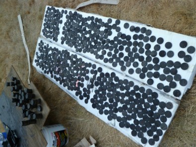The black disks in the above pictures have gone through steps 1-4 (of 7)… times 829 = what the hell was I thinking?!?! Since it’s Labor Day, I’m gonna take a break so my hands can uncramp. By Saturday, the markers will be finished and should look a little something like this.